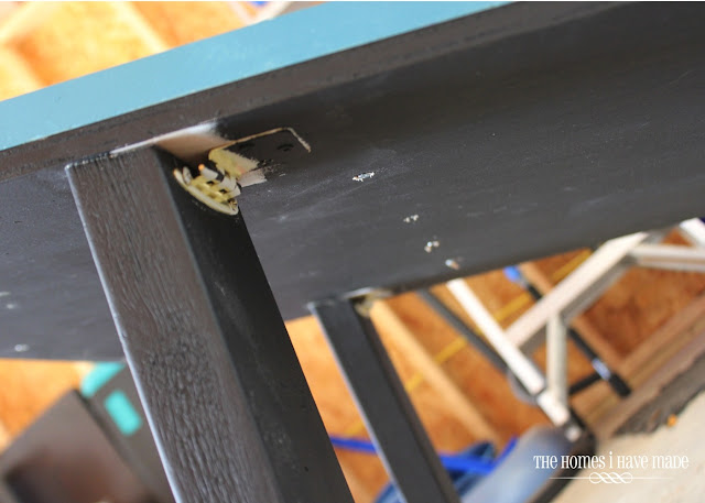The kick-stand-style legs were attached with basic $2 hinges from the hardware store.