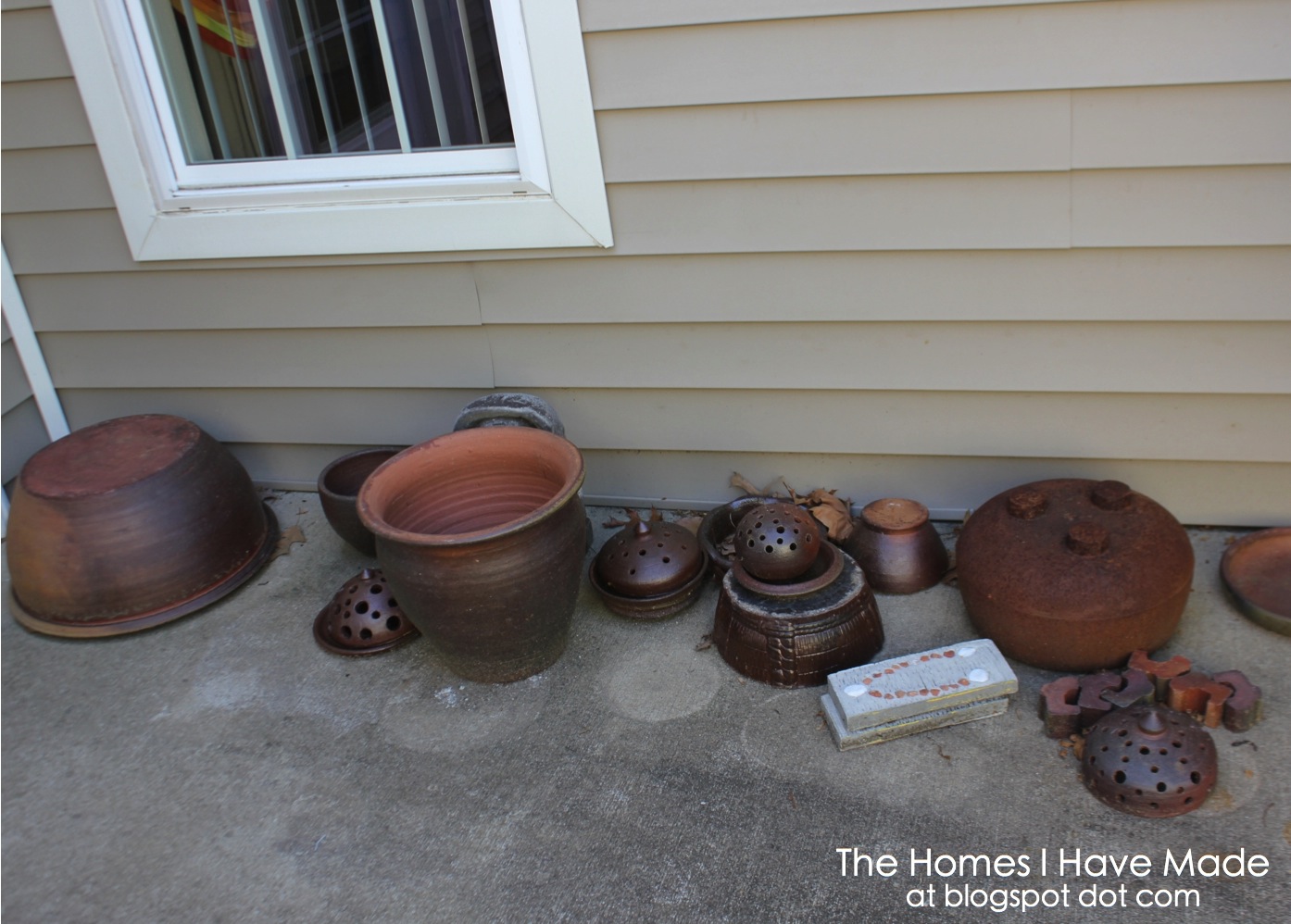 Alas, the ugly bench never got painted (but it’s at the TOP of my priority list at our next home!) and the pots never got filled (probably a good thing because I kill everything I grow!). They sat like this, ugly and empty all.year.long.