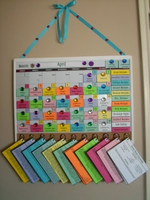 I was absolutely smitten with this menu board concept (and not just because I am allured by all things labeled and color-coded!) Although my meal-planning system was working, my recipes were in major need of updating and organizing…and despite having dozens of recipes, I was often making the same things over and over and over again. This menu board concept allowed me to plan a whole month at once (major time saver!), ensured that I made a different meal each night…AND it looked super pretty and organized with all the labels and colors (very important!)! Although RobbyGurl has a pretty awesome product here (and she even sells them!), I really wanted to give the menu board a go myself…yeah, I’m kinda stubborn and controlling that way! I really loved her concept, but there were a few things I wanted to customize in order make the final product more specific and functional for my needs!