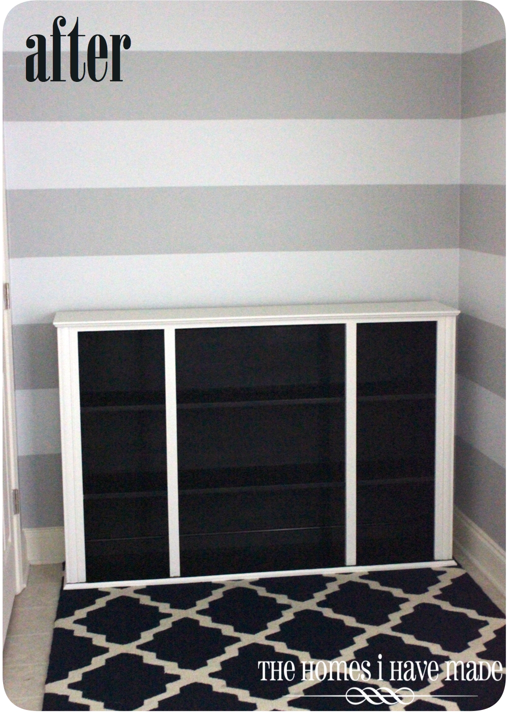 Wow! That is awesome. I would never have thought to use the top of a hutch as a bookcase. Love the contrast between the white and dark colors. Looks great with that rug too. Thanks for sharing.