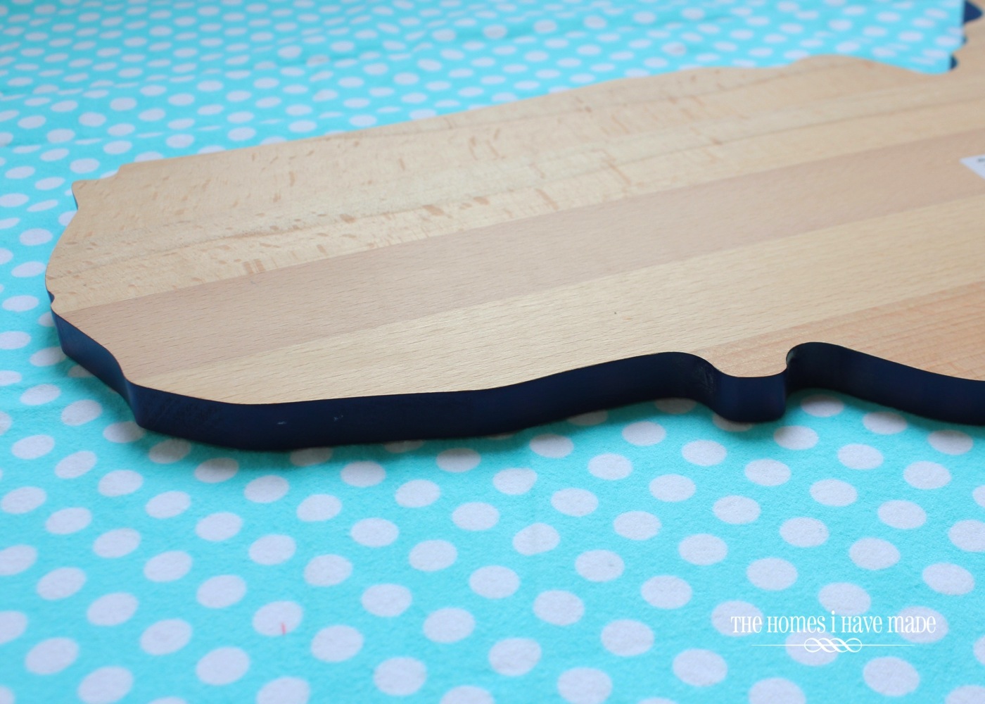 It’s a cutting board from Target. Yep, you read that right. I found it on the bottom shelf a few months ago. It was $25, but since the rim of it was already painted the same blue color as our house…